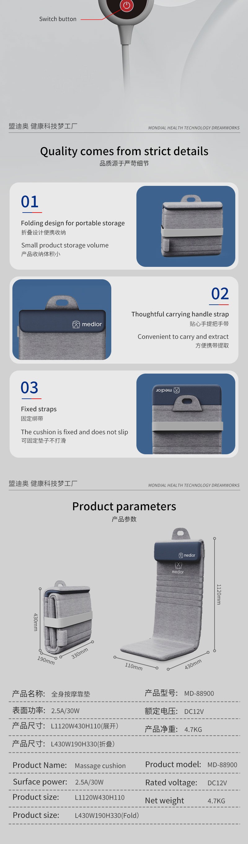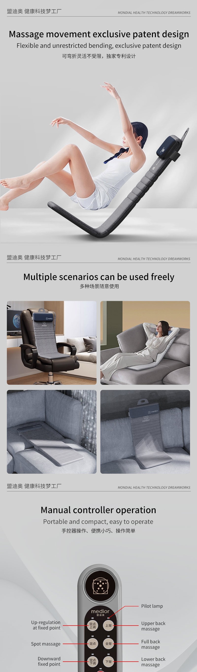 3、力度三檔調(diào)節(jié),定點按摩,腰背按摩、臀腿按摩、全背按摩模式選擇